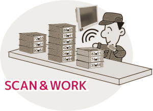 SCAN&WORKで「モノ」が動くその場で情報を収集することにより、「情物一致」を実現します。