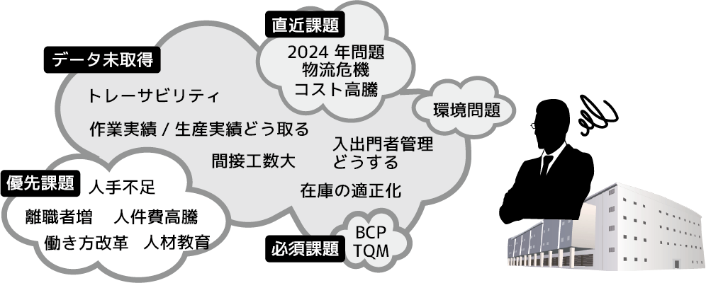 :人手不足、2024年問題、働き方改革、トレーサビリティの確保など、現代の製造業が直面する課題への対応。