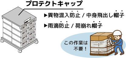 ・プロテクトキャップ使用で、ストレッチフィルムレス運用を実現